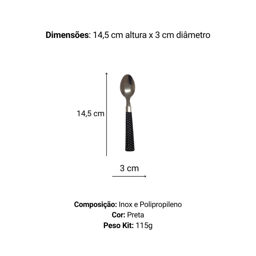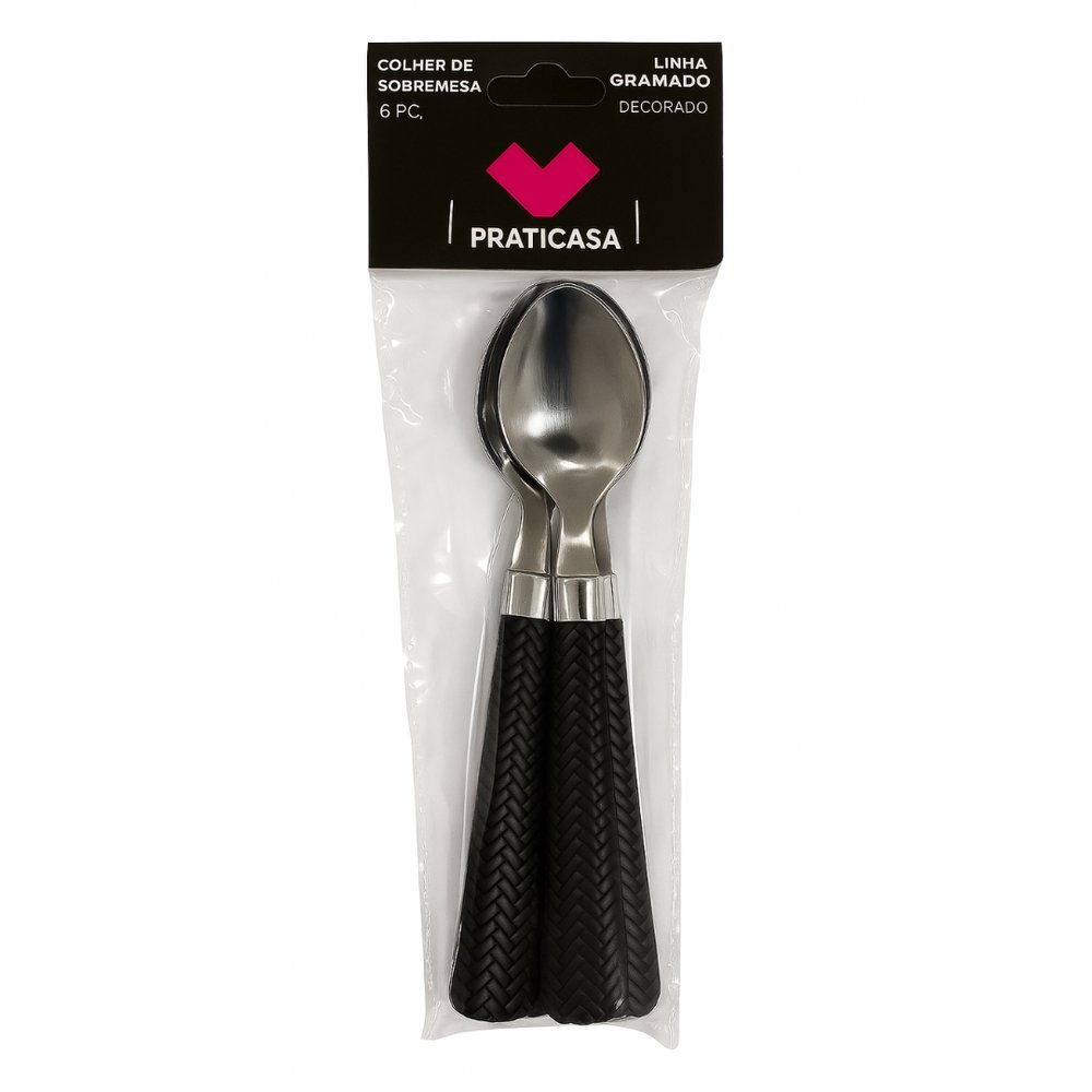 Kit 6 Colher de Sobremesa Inox Linha Gramado – Preta