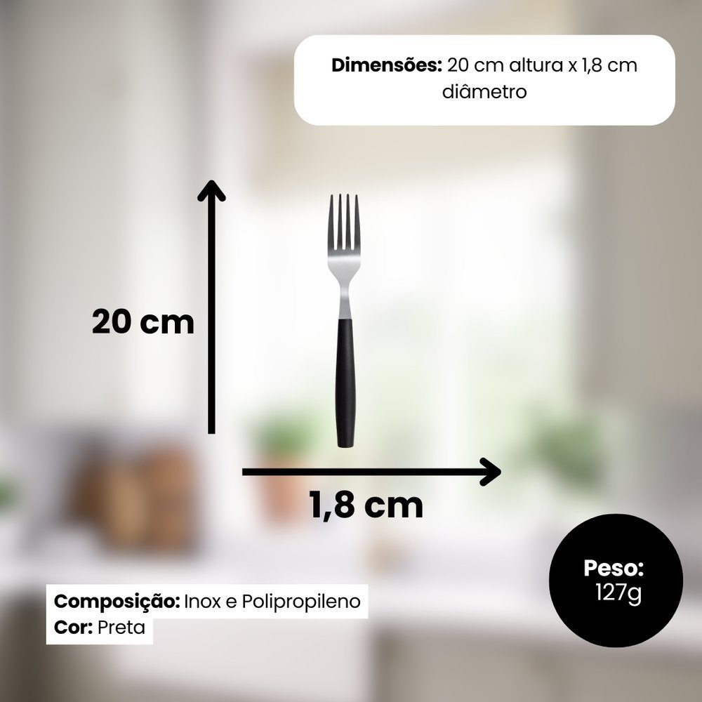 Kit 6 Garfo de Mesa Inox Linha Mato Grosso – Preta