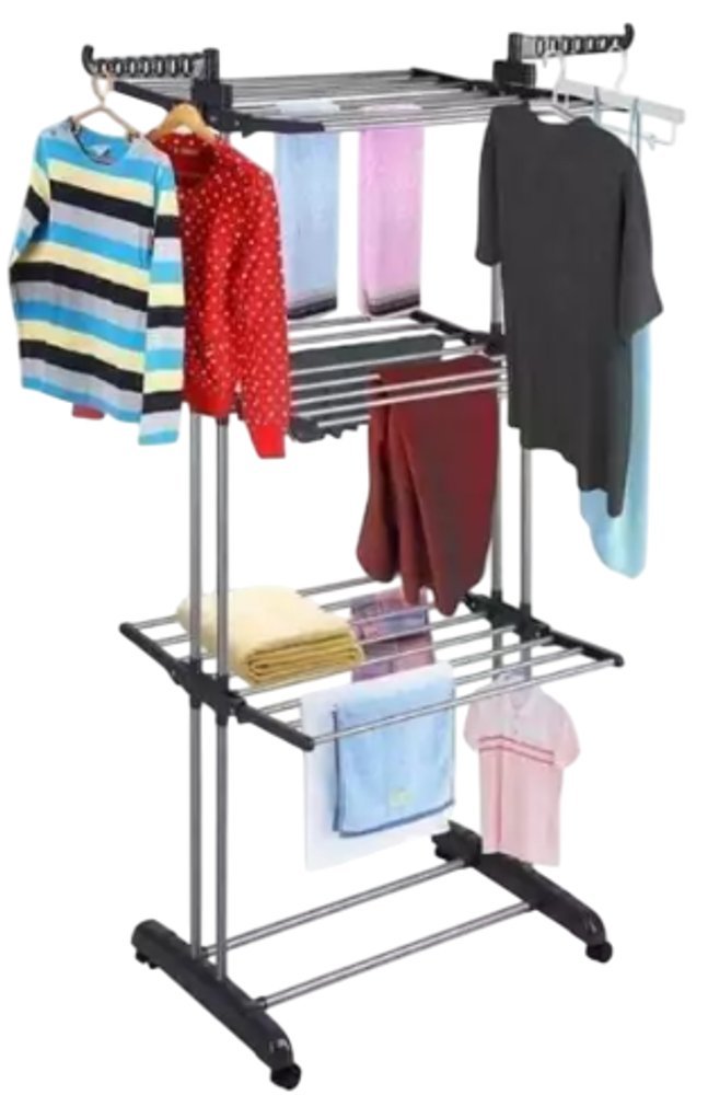 Multi varal de chão com bandejas e 3 andares Com Cabideiro- Preta