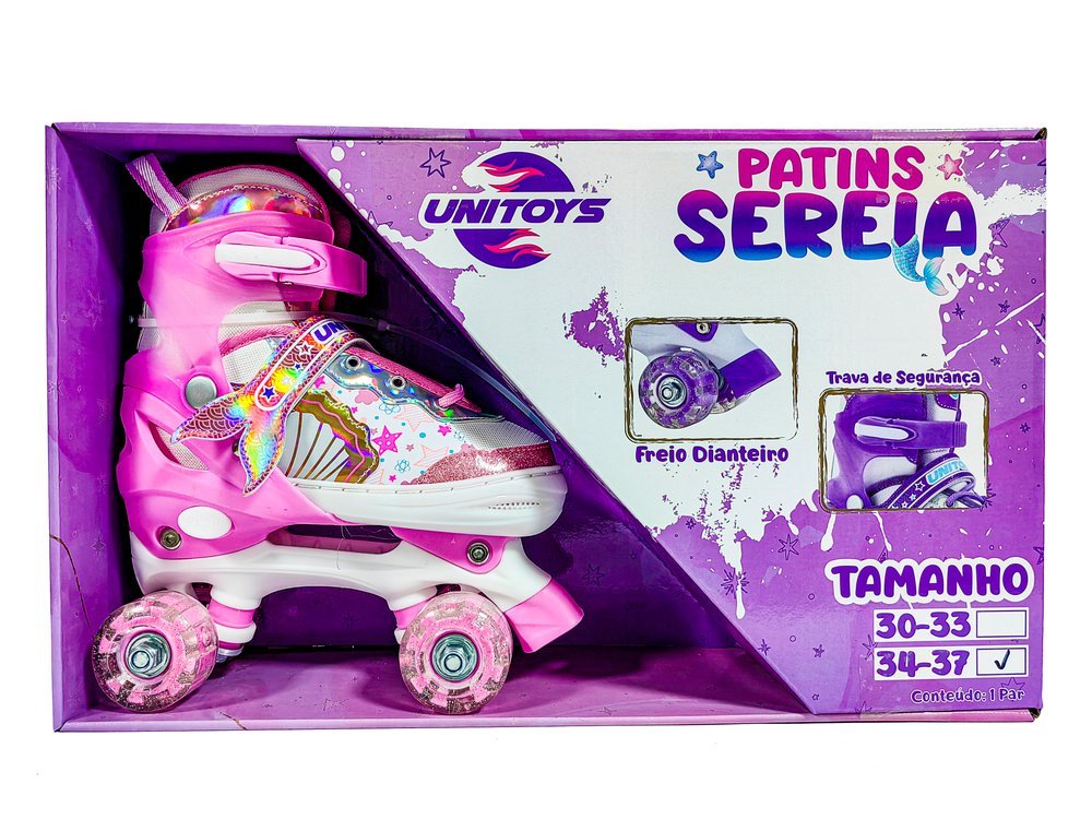 Patins Infantil Sereia com LED – Rosa